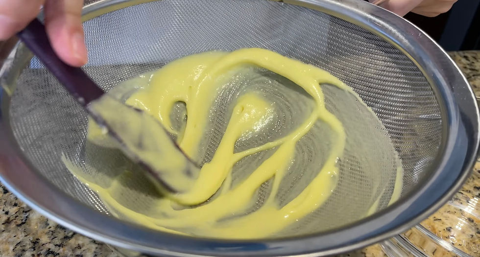 5. Place a sieve over a small pot. Pass the pastry cream through the sieve to remove any lumps.