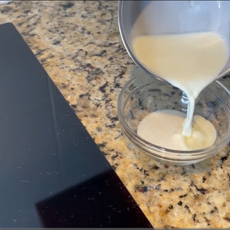 3) In a medium size pan over a low/medium heat, pour the heavy cream, stirring constantly for approximately 10 minutes.